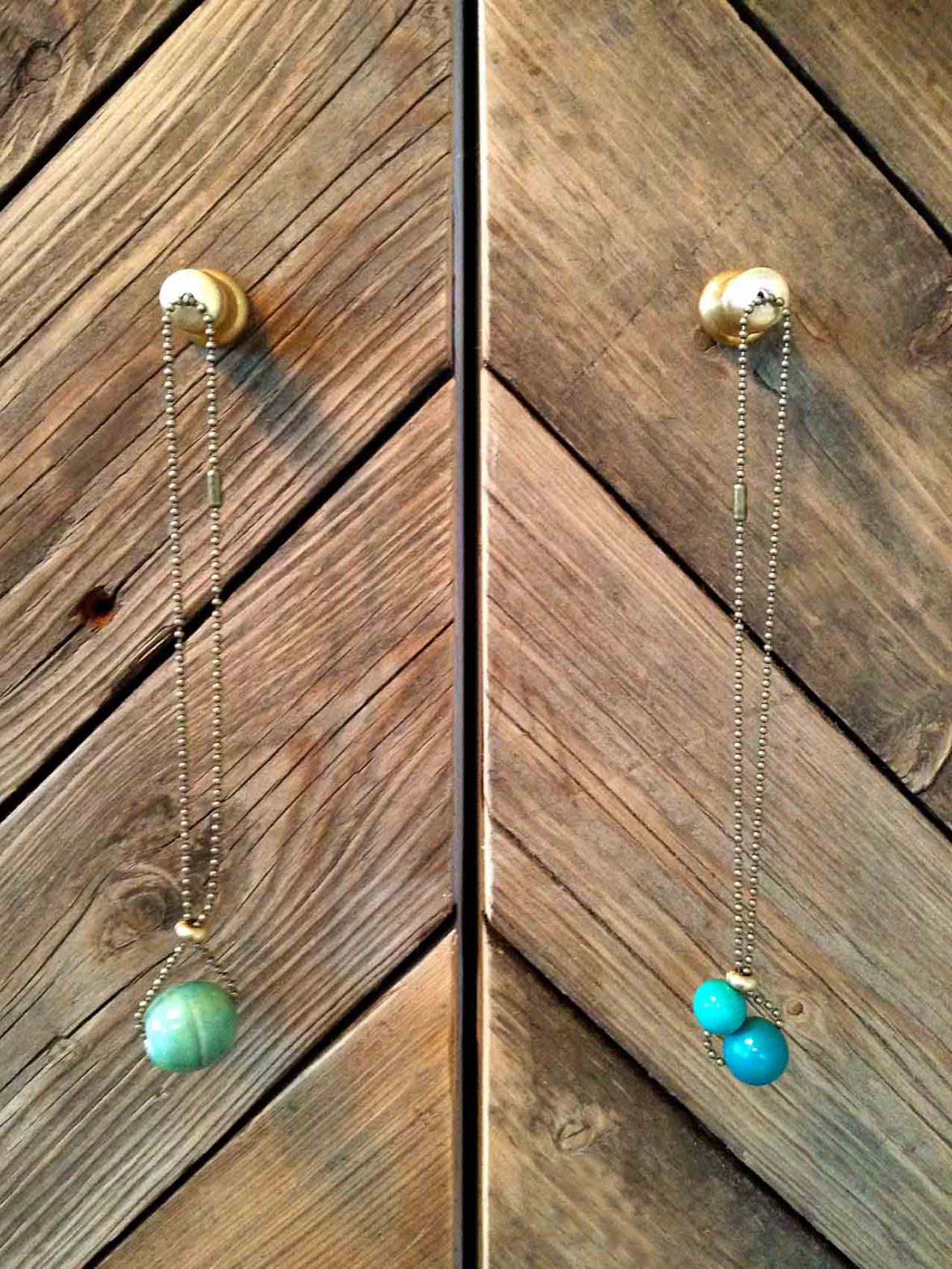 Afwerking: knopjes en kettingen zijn in mat messing en chroom te krijgen.