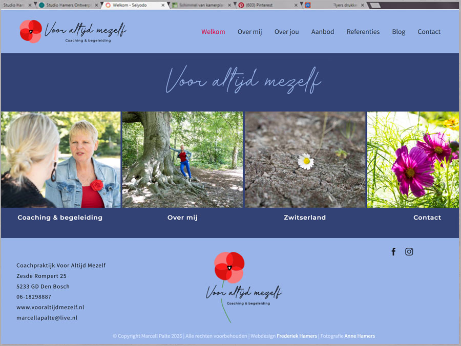 Coachpraktijk Voor Altijd Mezelf biedt 1 op 1 coaching & begeleiding en retraites in Zwitserland. Marcella Palte heeft na jaren haar praktijk beëindigd, dus de website is niet meer online te zien.